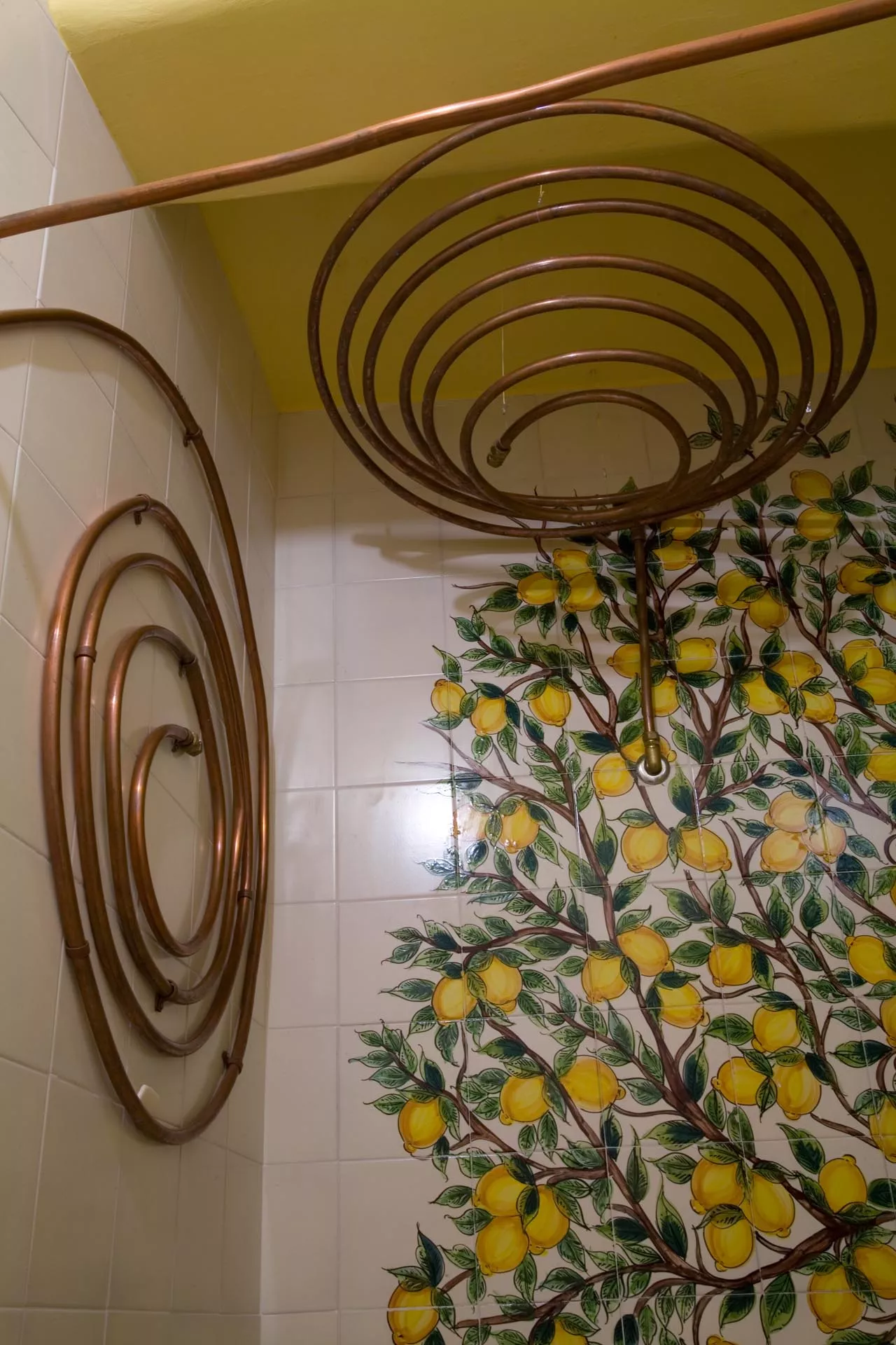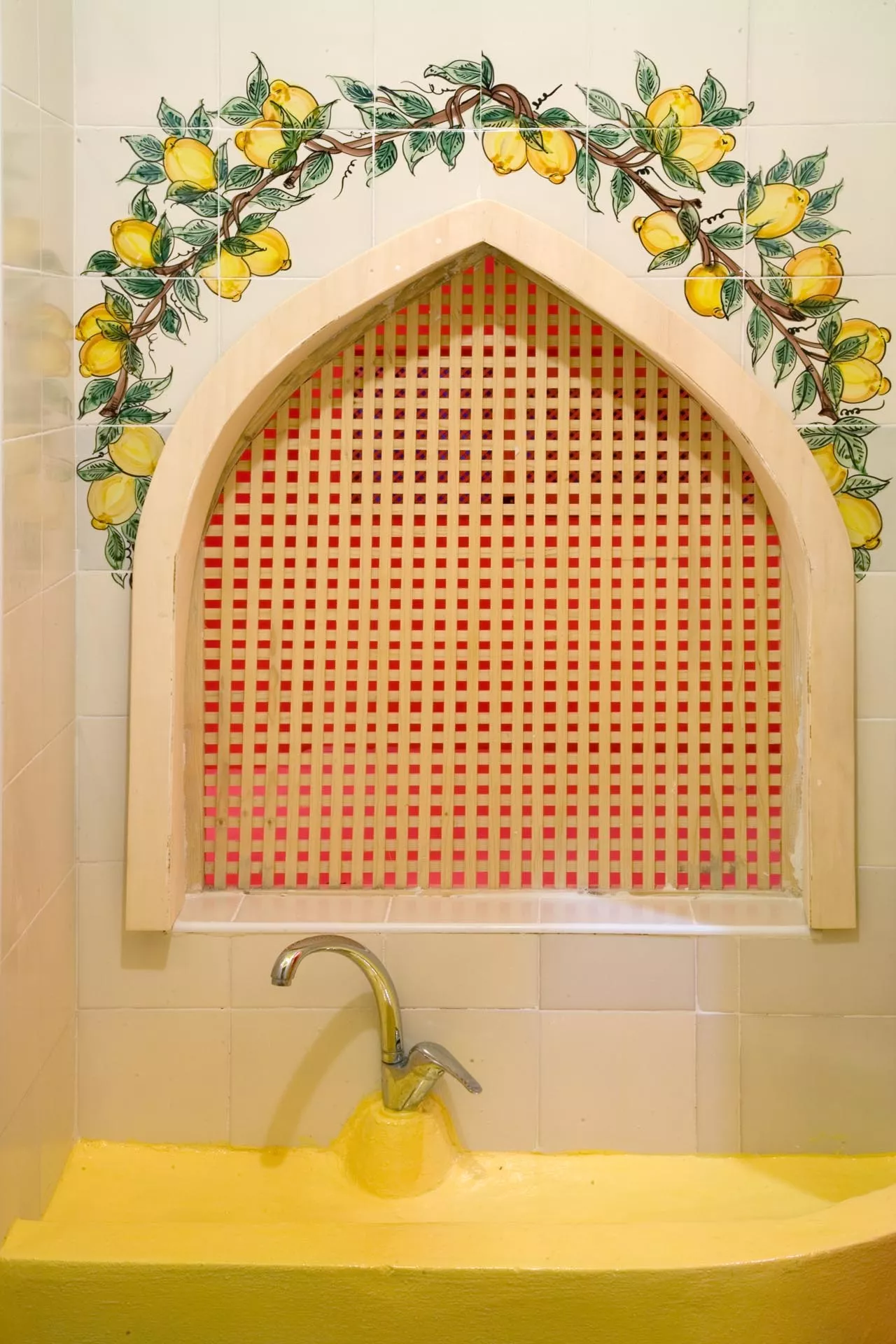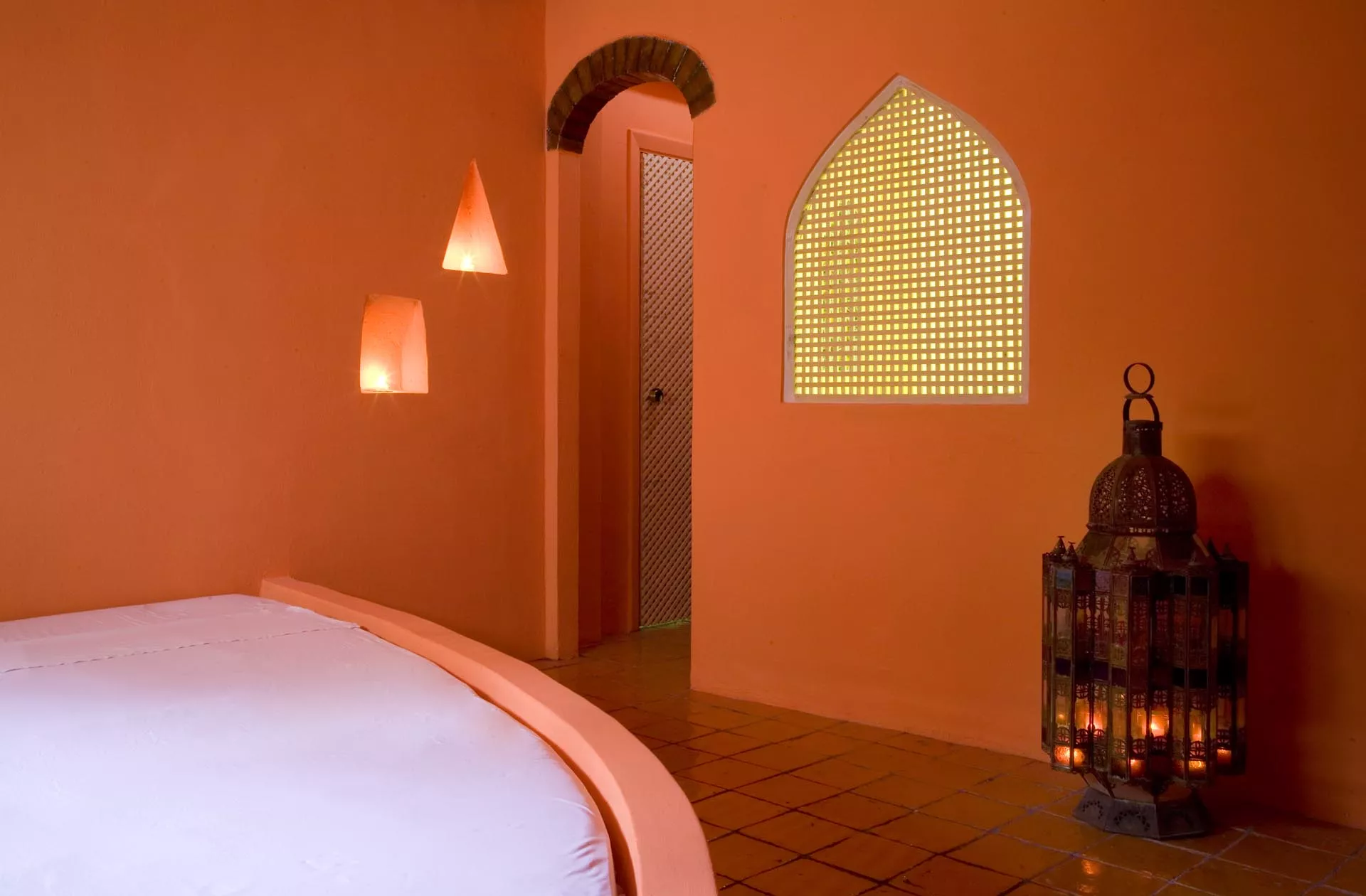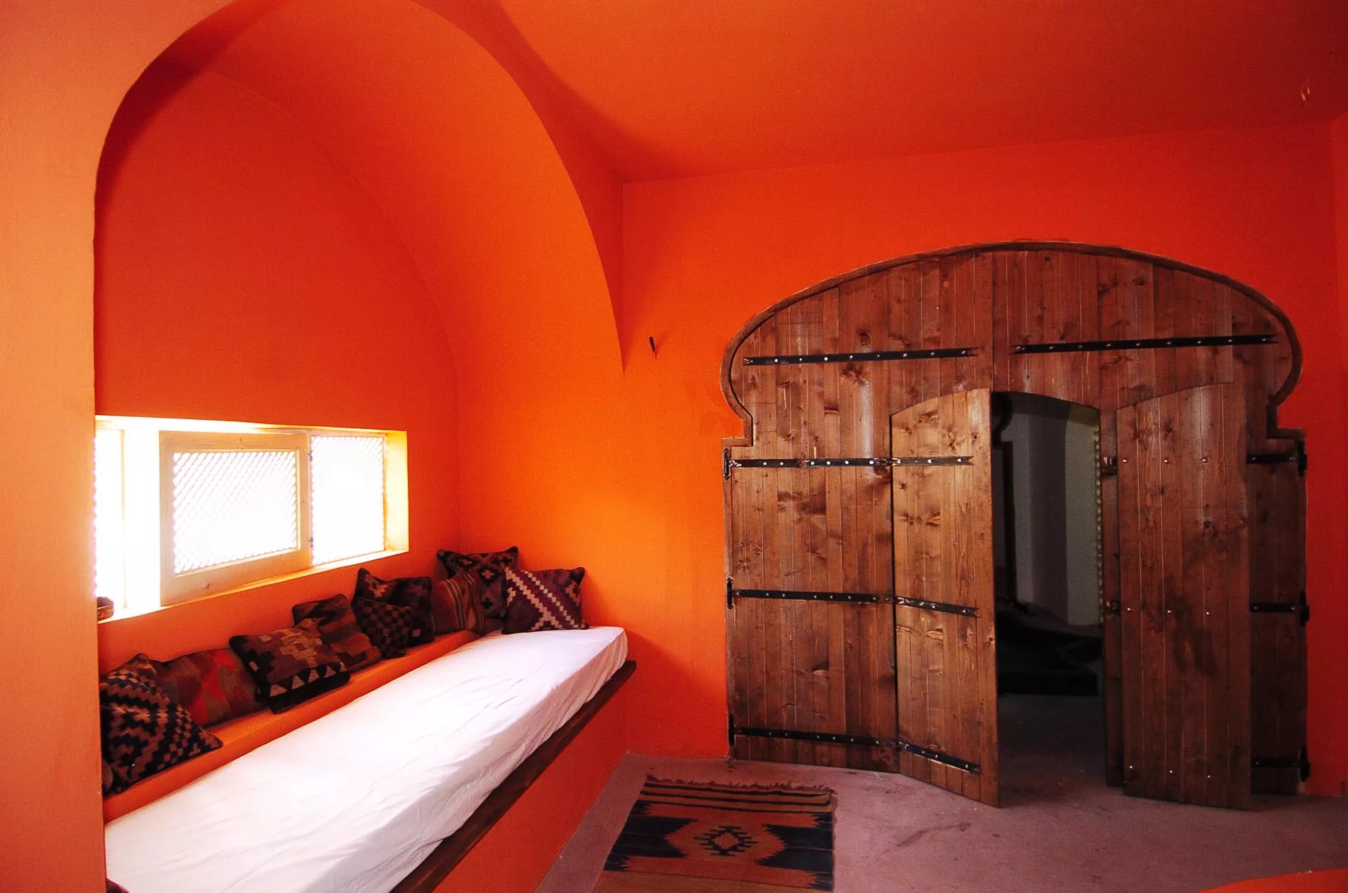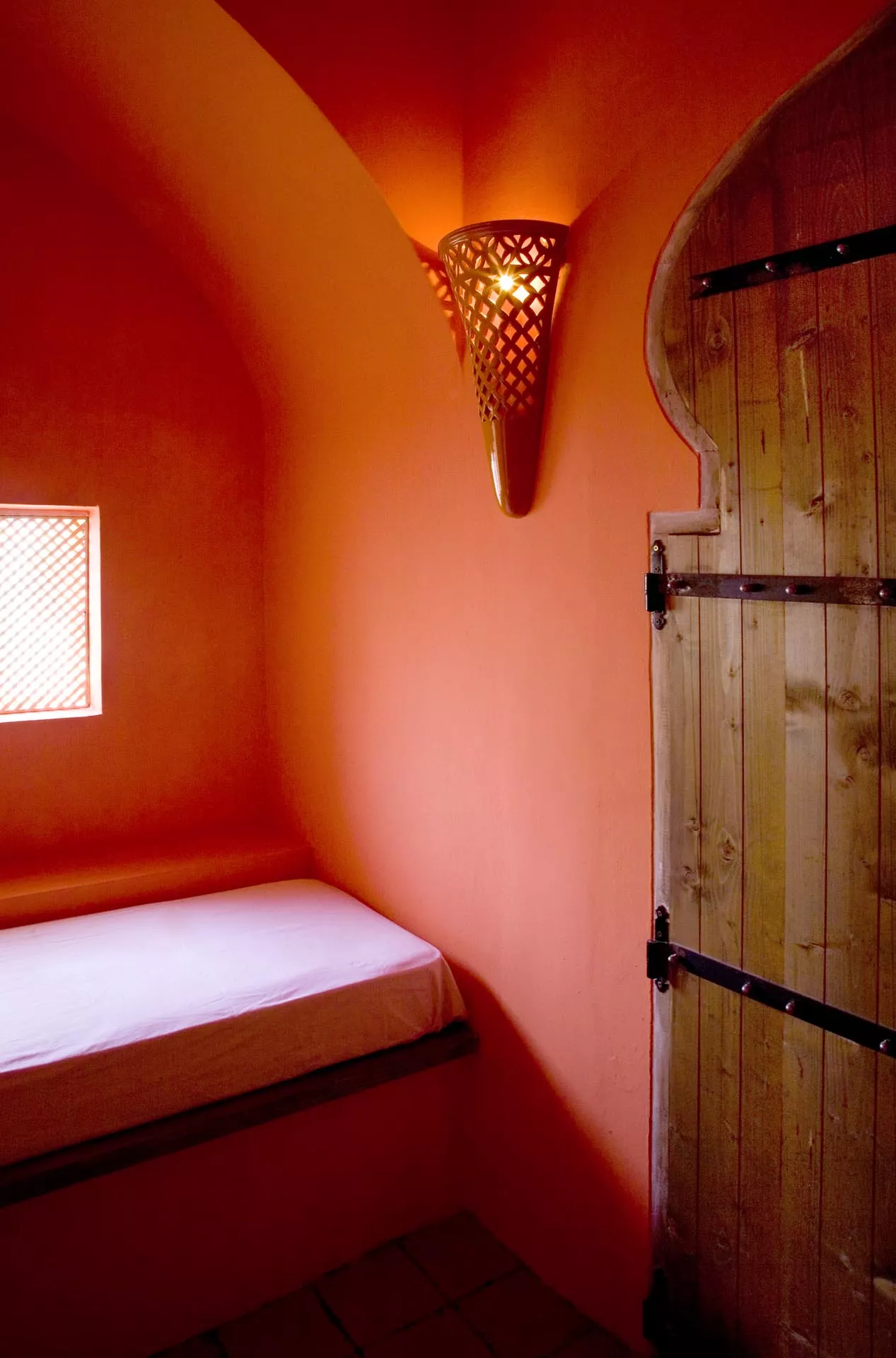 Gli altri due ambienti hanno grandi letti semi-ogivali sui quali riposare dopo aver provato l’esperienza del bagno turco. La bassa vasca a forma di Stella di Davide, la vetrata in stile bizantino, il taglio architettonico musulmano, i tappeti afgani, le lampade marocchine, la sauna finlandese sono elementi sparsi all’interno dello spazio che abbracciano numerose culture dando una forza di conoscenza unitaria.