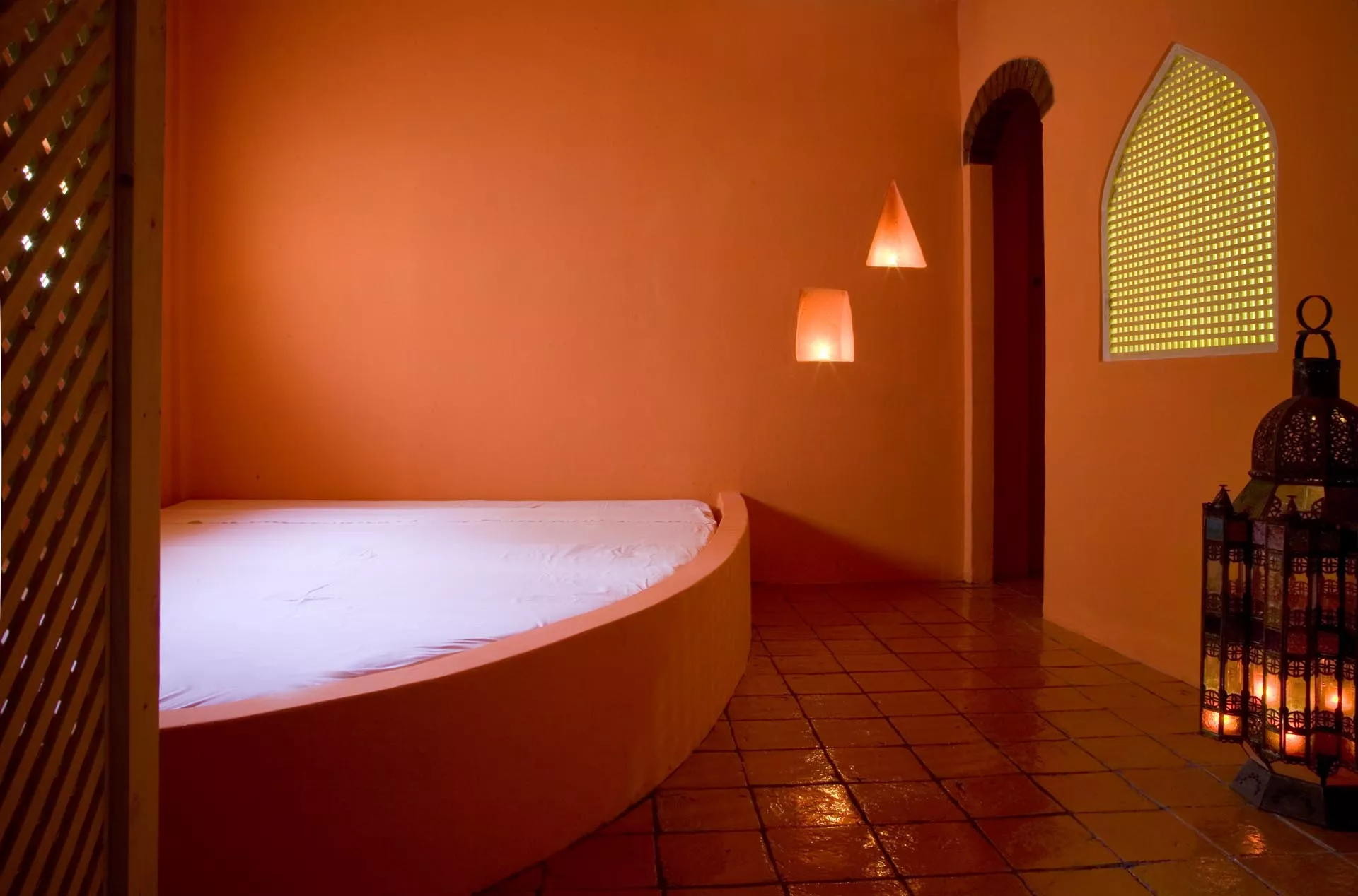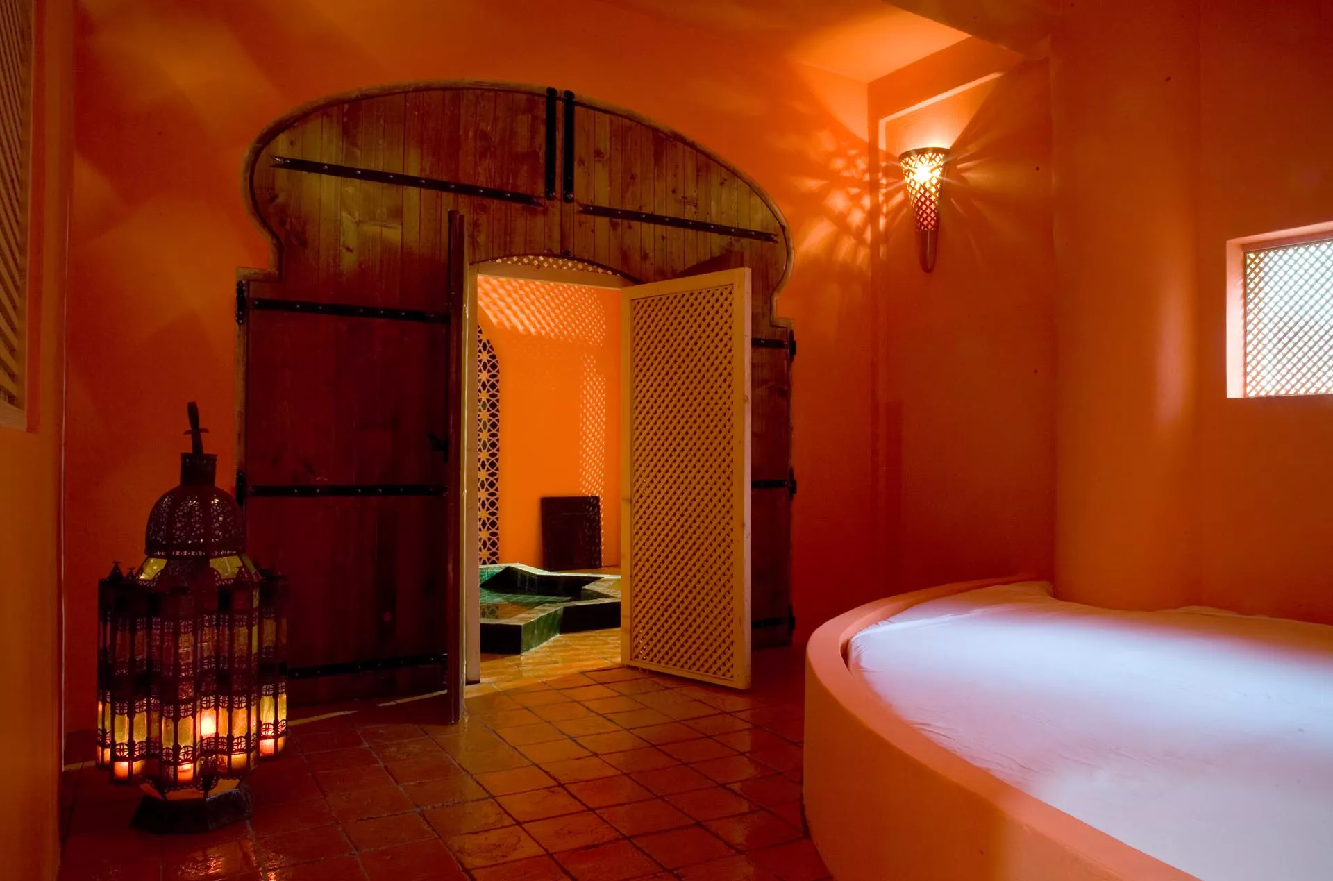 Il caldo ambiente mediterraneo dell’hammam, offre ai clienti dell’Atelier sul mare un’esperienza unica. Infatti, oltre alla possibilità di essere vissuta come uno spazio personale, questo bagno mediorientale, nel pieno della sua tradizione araba, sposa una volontà di incontro sociale, e si caratterizza per la grandezza dei suoi ambienti, tre principali più i bagni, che hanno il loro centro sotto la cupola le cui fessure dalle forme geometriche differenti filtrano la luce del sole.