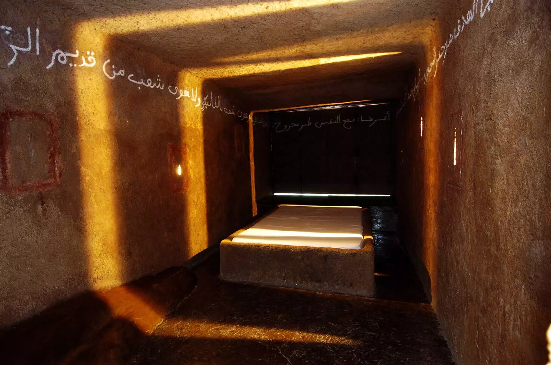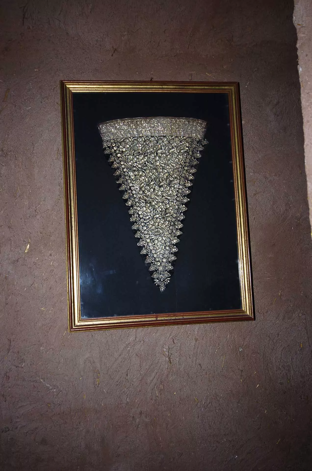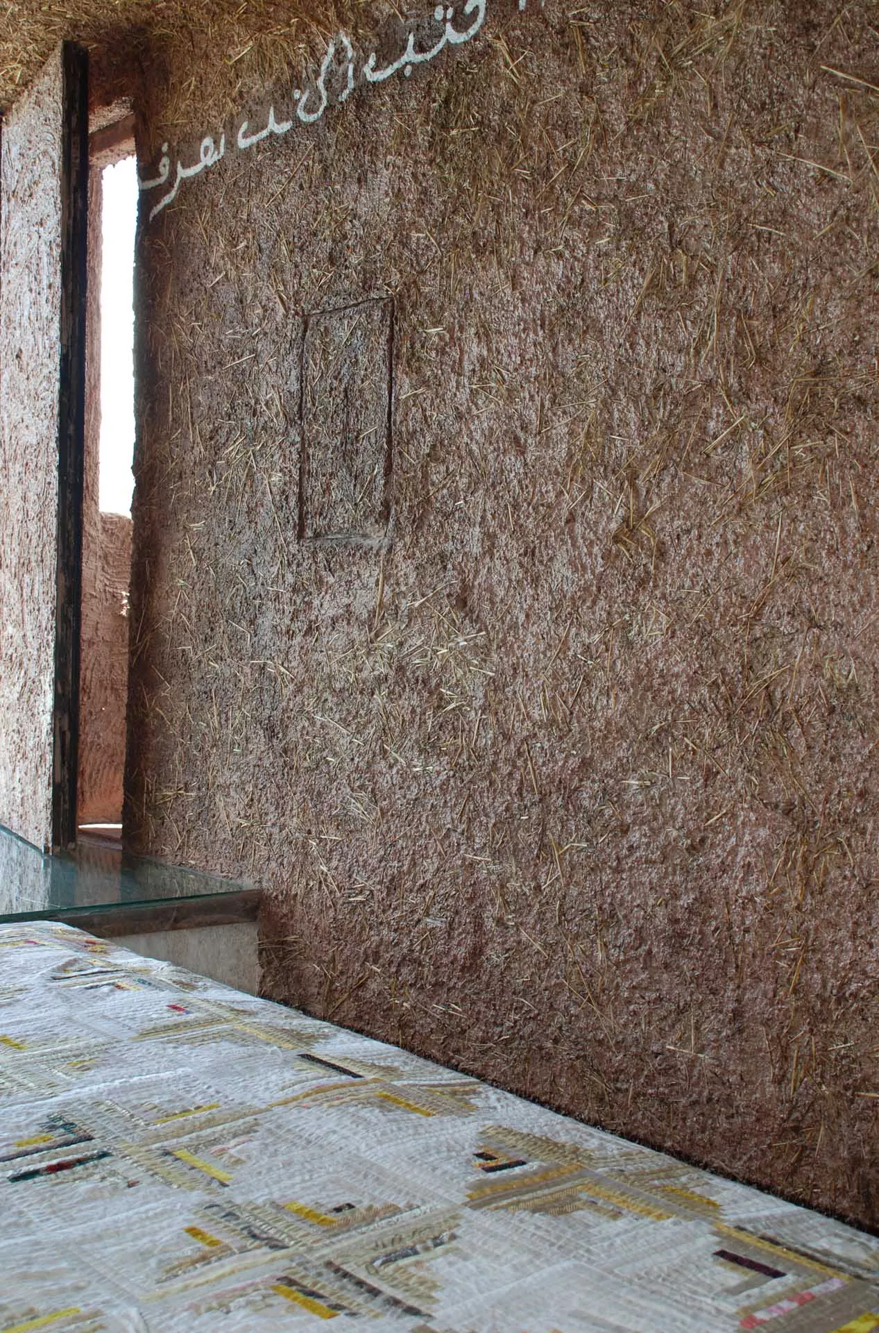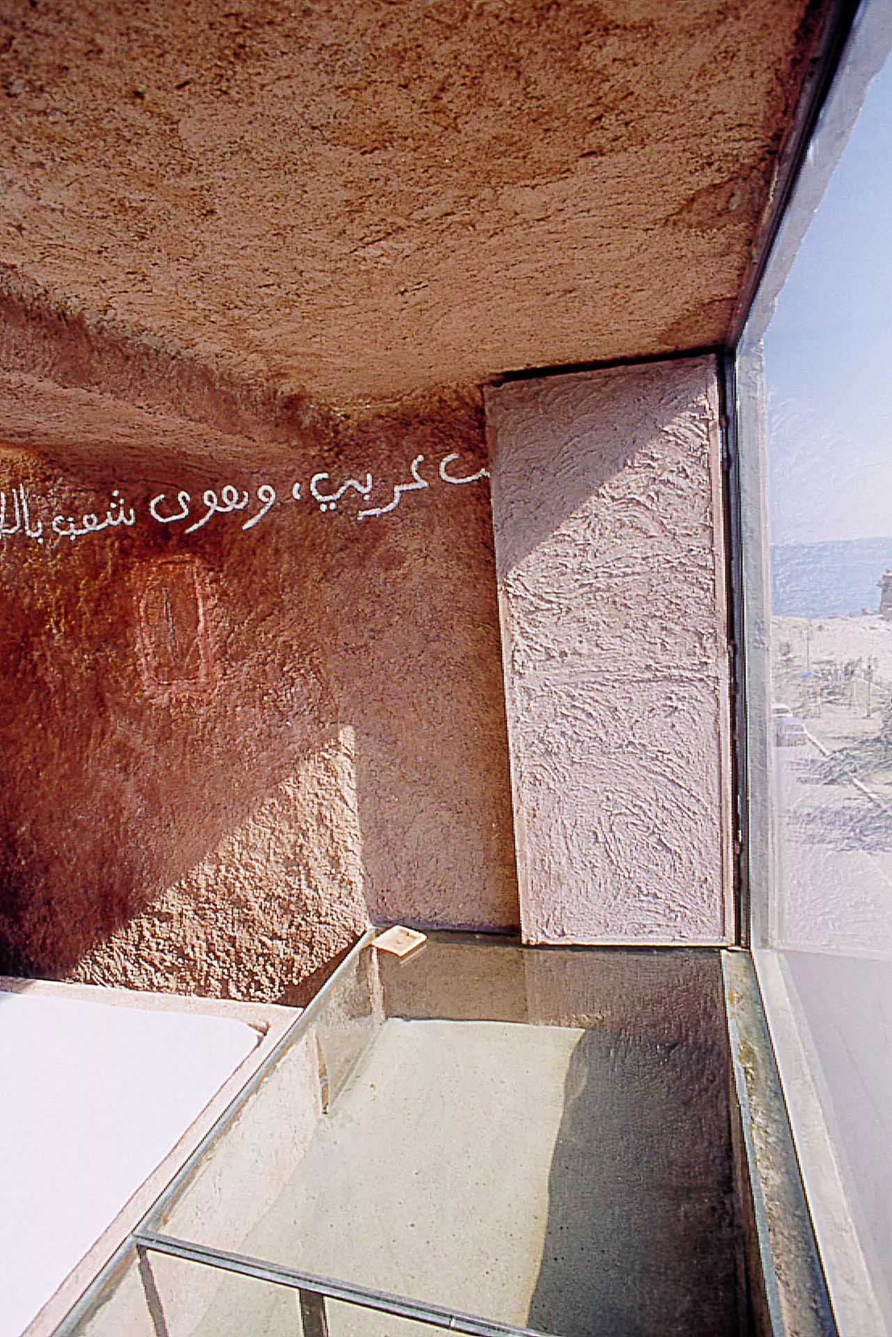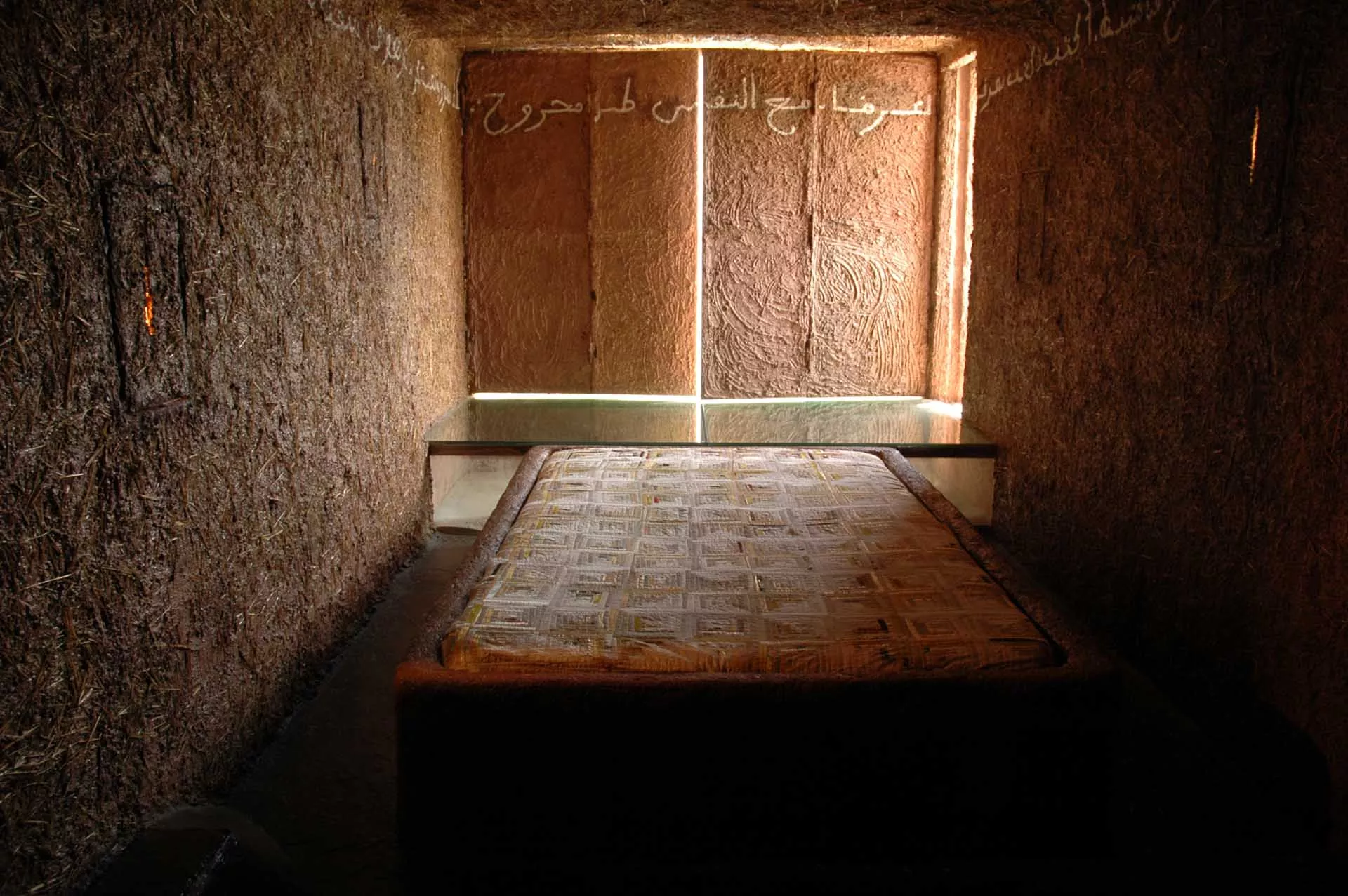 La stessa poesia della porta, scritta in arabo, delimita il perimetro dello spazio, con i caratteri che divengono decorazione ritmica della superficie.