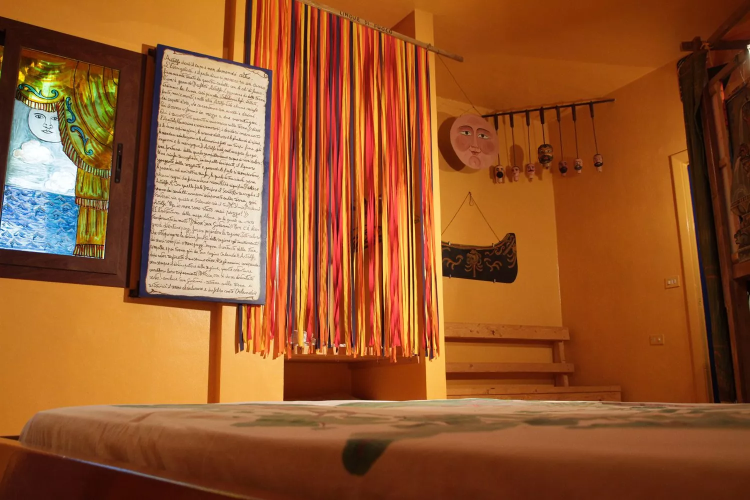 L’ospite della Stanza dell’Opra potrà decidere se coinvolgerlo in questo gioco. Chi entra nella stanza è invitato a giocare: a saltare sul teatrino e manovrare i pupi, recitando personaggi contemporanei o quelli epici cavallereschi della tradizione. All’interno le opere di Pina Patti, mamma di Mimmo. In bagno due docce a rappresentare simbolicamente le due diverse fontane dell’epica cavalleresca: la fonte dell’amore e quella dello sdegno, dove si abbeveravano paladini e donzelle, innescando le avventure rocambolesche che sono giunte fino a noi.