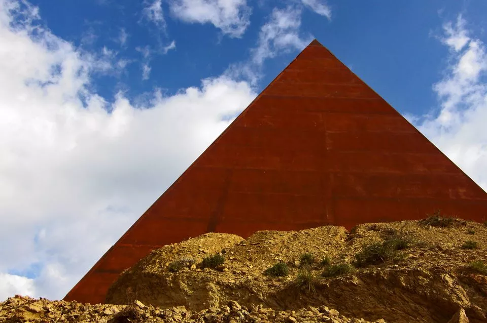 Al concetto di immortalità, notoriamente correlato alla piramide faraonica, subentra qui il concetto più responsabile di transitorietà, attraverso il quale l’artista celebra la vita nel suo incessante anelito all’eterno.