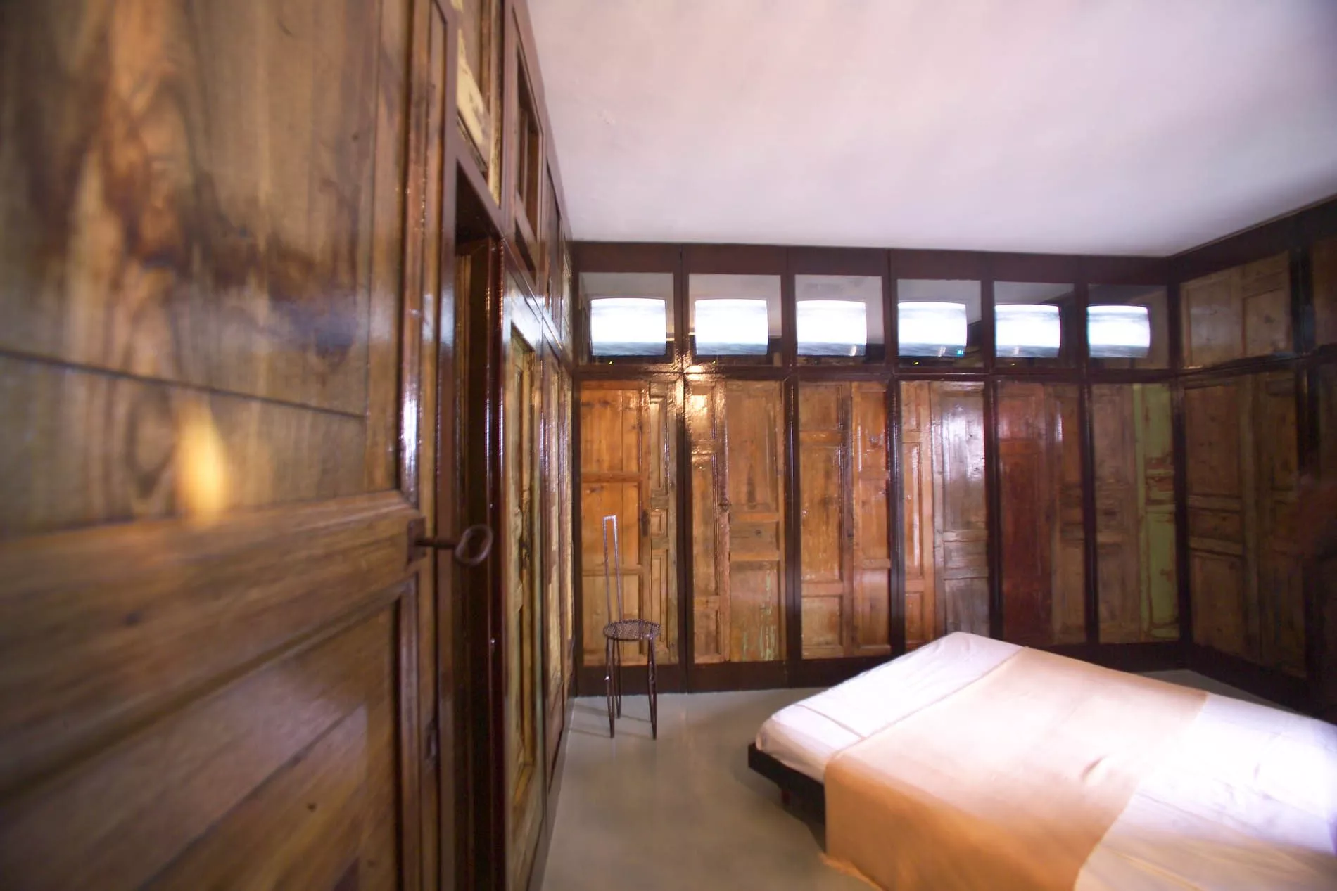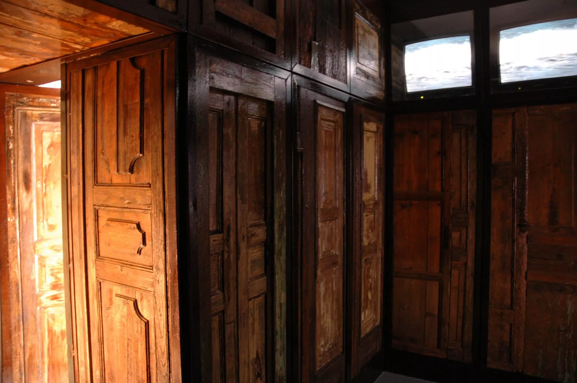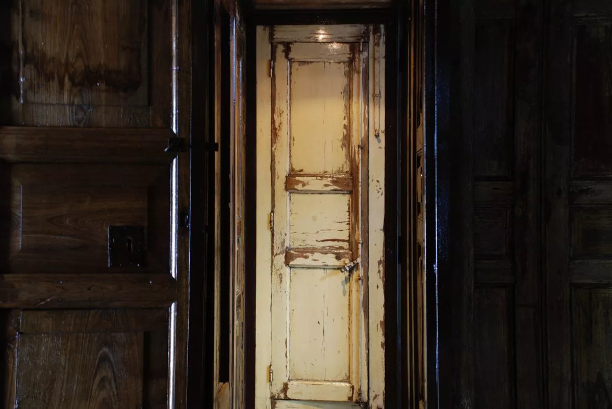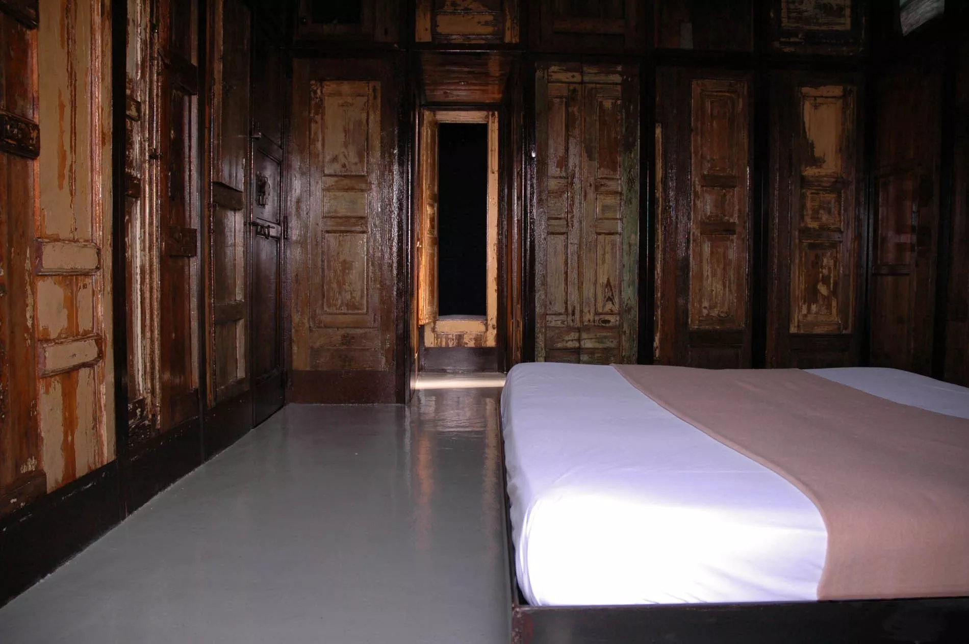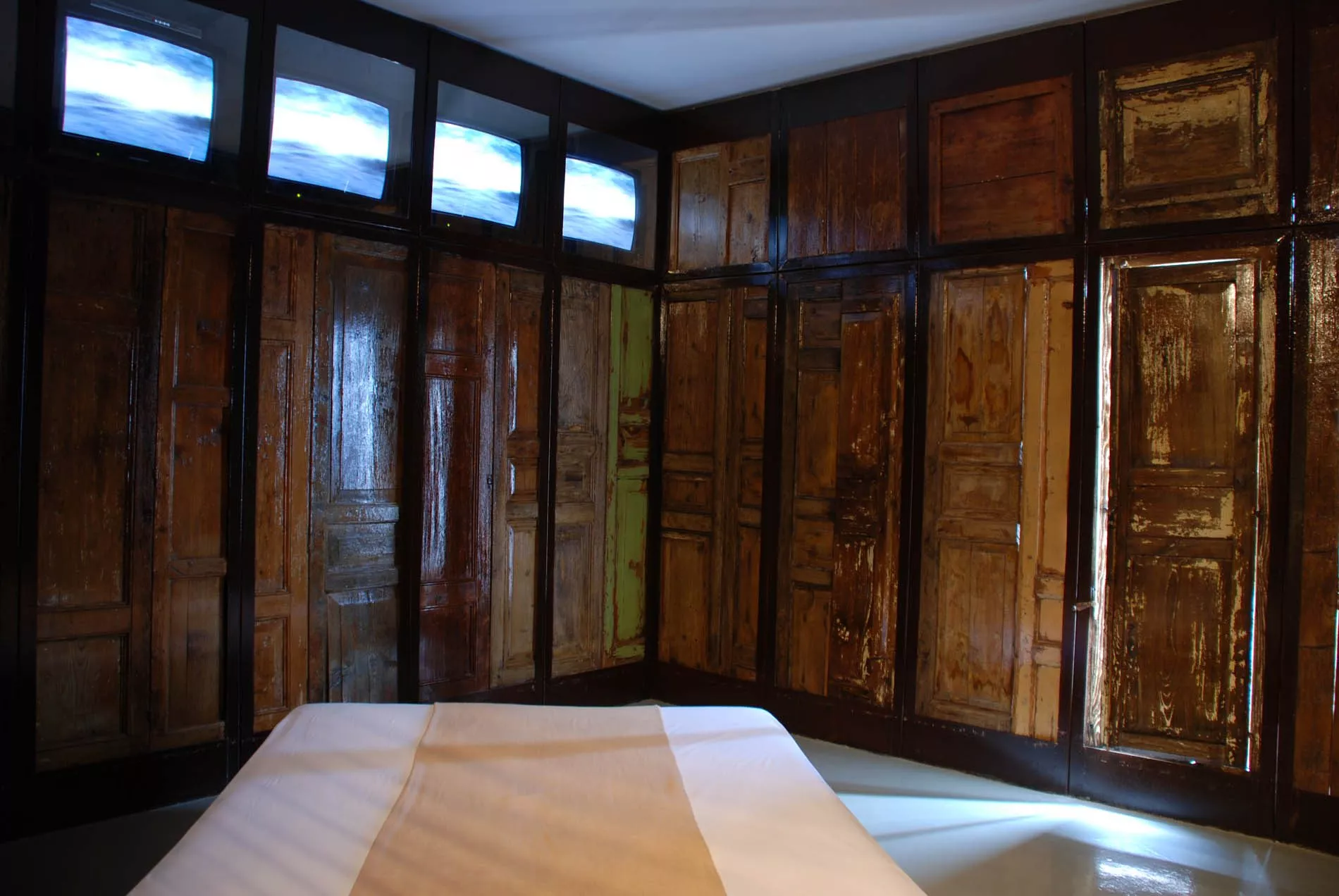 Le vecchie porte in legno, incastonate e composte quasi come delle tarsie, portano con loro il senso della storia e indicano un tempo infinito, quello della ricerca di ciò che non si ha o di ciò che si è perduto.