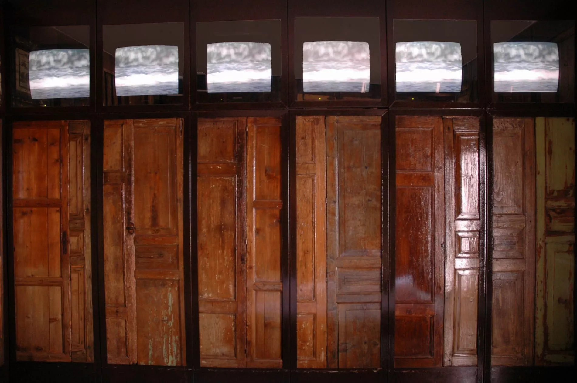 L’opera di Fabrizio Plessi comincia dalla grande e antica chiave di ferro che apre la prima di una serie di altre porte che rivestono le pareti della stanza e che, chiuse, negano la visione del mare. Solo una di esse, dopo una ricerca che da reale diviene metaforica, si apre alla vista del mare vero, simbolo di rigenerazione.