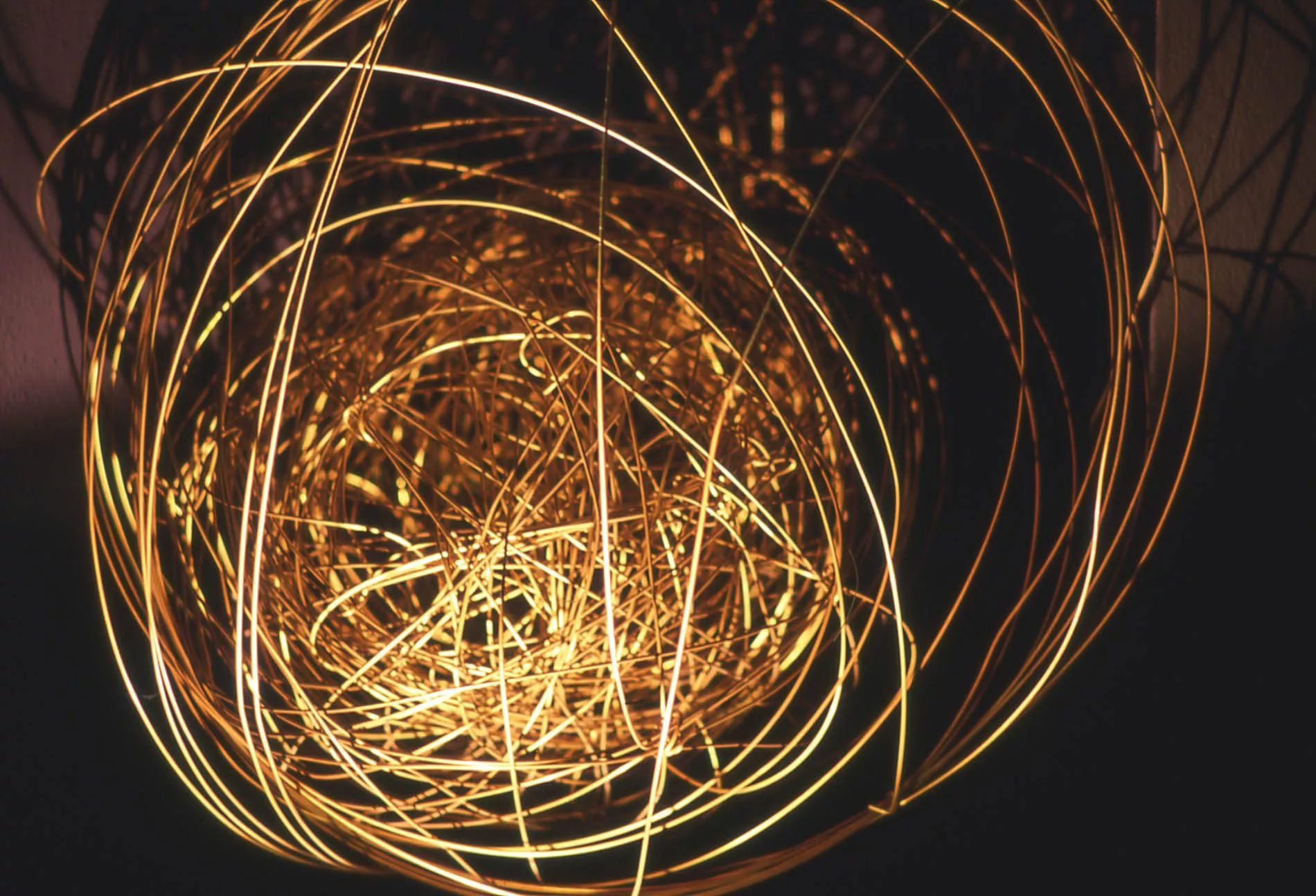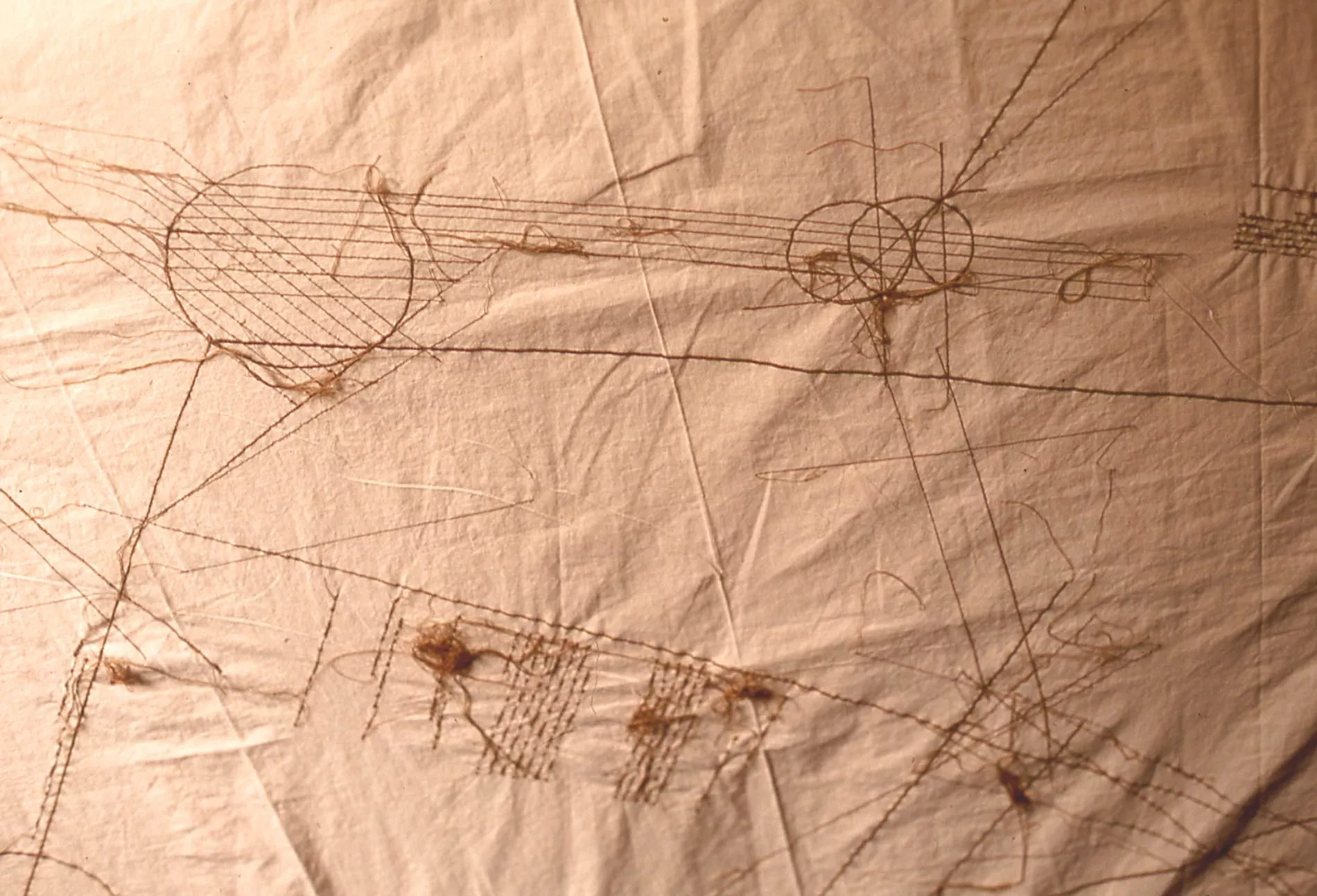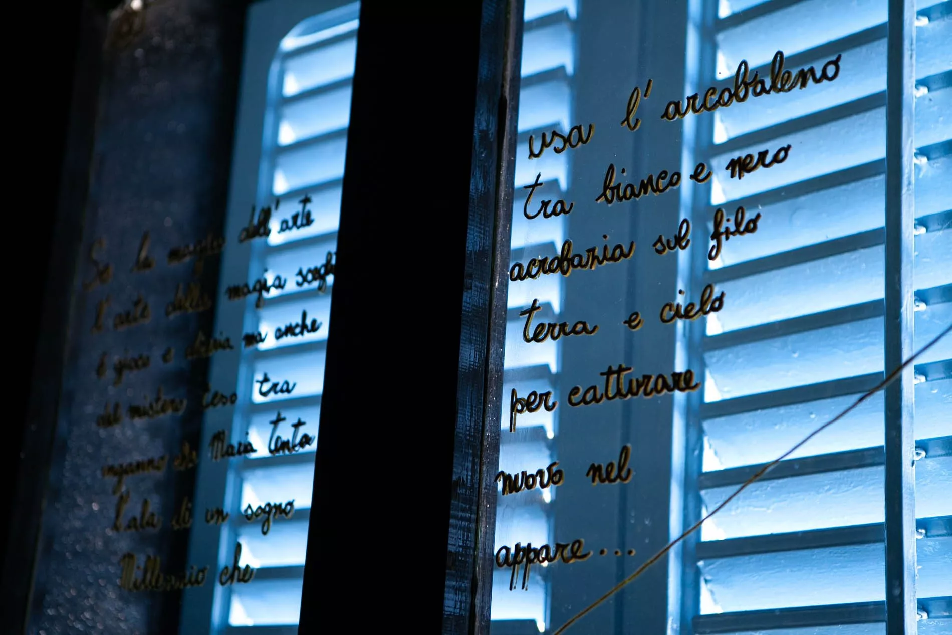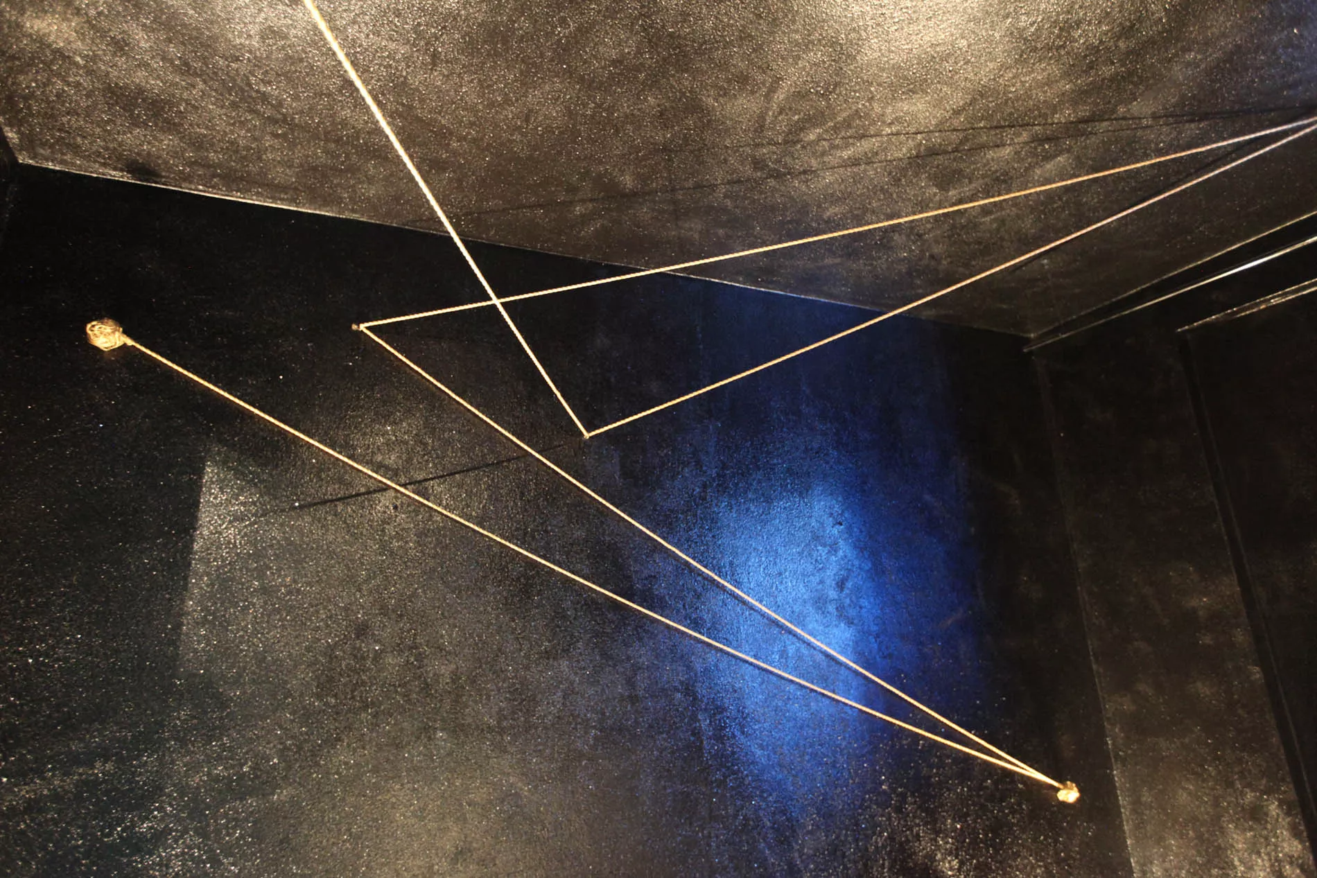 É un affascinante viaggio che dalle profondità degli abissi conduce verso l’infinito dello spazio cosmico, quello creato da Maria Lai in questa stanza.