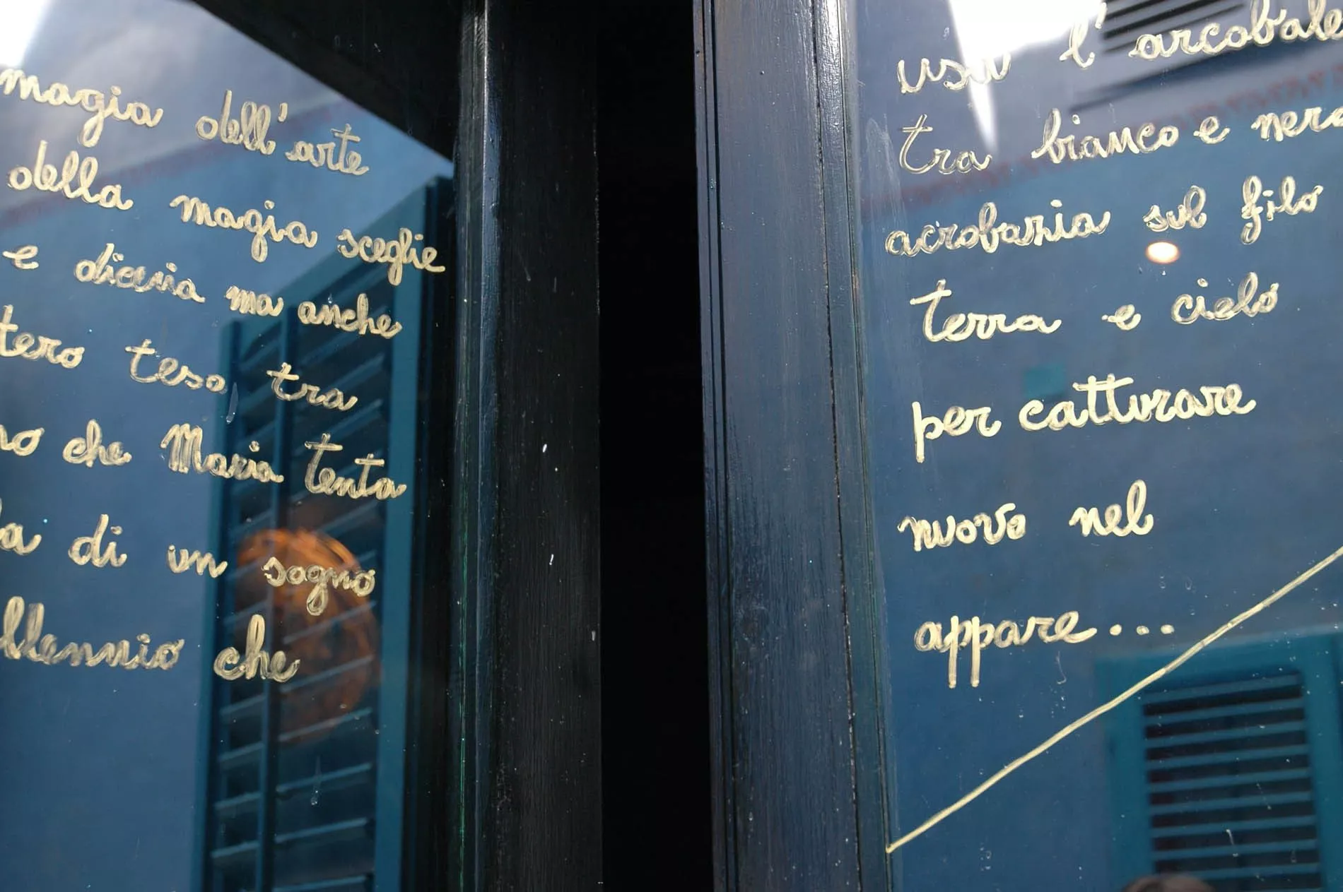 L’illuminazione molto studiata e i colori intensi contribuiscono a creare un’atmosfera sospesa tra mare e terra, tra luce e ombra. Sintesi e punto focale dell’insieme è la pietra spaccata che racchiude in sé il silenzio e il mistero di queste due terre. Una notte per ritrovare in quel buio la luce di una stella, “sfuggendo per un attimo al mondo della divisione ed entrando nel mondo dell’unità dove una cosa, una creatura dice all’altra: Questo sei tu”. (Antonio Presti)