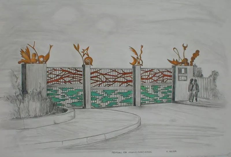 Sul cancello d’ingresso è stata realizzata l’opera in acciaio dal titolo “The natural world” dello scultore statunitense Richard Helzer.