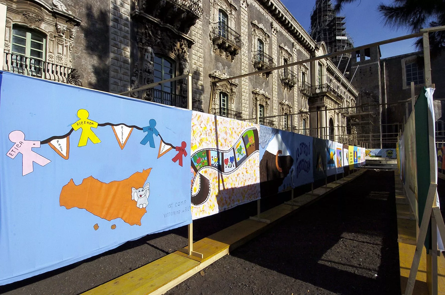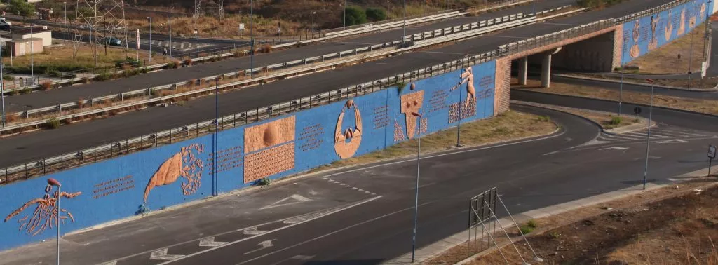 A Librino, popoloso e periferico quartiere di Catania, prende forma un’opera d’arte epica e monumentale. Due chilometri di cavalcavia trasformati da 50 opere di terracotta in bassorilievo, realizzate con la partecipazione di 20mila persone. Il progetto dell’artista e mecenate Antonio Presti